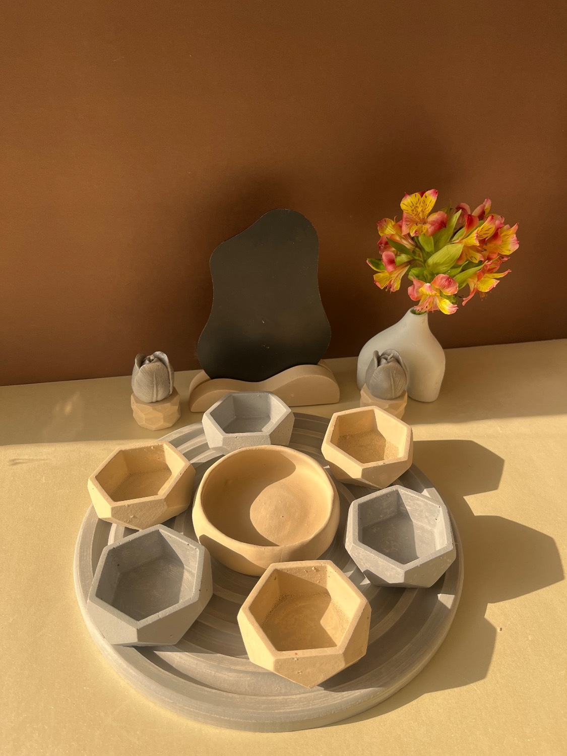 هفت سین مدل شش ضلعی ۳۵۰,۰۰۰ تومان شامل :6 عدد ظرف 6 ضلعییک عدد کاسه گرد جای سبزهسینی پایه آینه و آینه و شمعدان افزودن به سبد خرید
